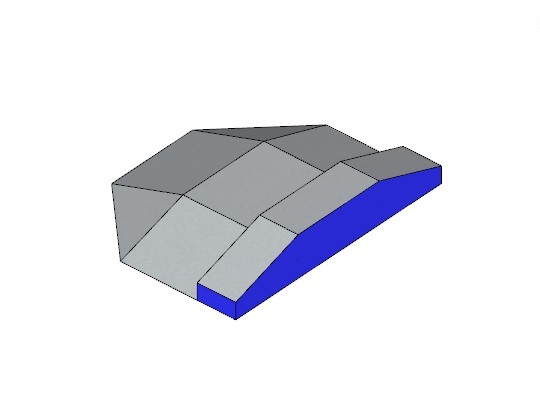 部分形狀像金字塔一樣,也是滑板場常見的障礙道具的一種,也帶有弧形坡面,增加運動難度。