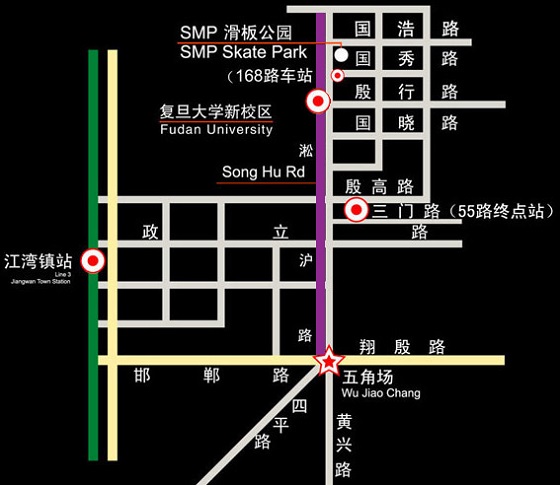 中文名SMP滑板公園 外文名 SMP skatepark 地址:上海市楊浦區淞滬路2100號體育中心 占地一共 23000 m2。